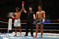 3R、軍司はロープ際をフットワークで回り、左右のボディフックから跳びヒザ、顔面前蹴りで大岩にダウンを迫る。右ボディアッパーに手応えがあったかの軍司。しかし大岩も左スイングフックでヒットを上げる。そこから軍司をロープに詰め、左ストレートと右フックでさらなるヒットを狙う。左インローを入れて迫る大岩は左ストレートでも軍司の動きを止め、あわやの場面を演出する。しかし軍司も大岩が襲い来ると左フック、右ストレートを当て返す。判定は30-27、29-26、30-26の3-0で軍司。Krush王者となっての第1戦を勝利で飾った。