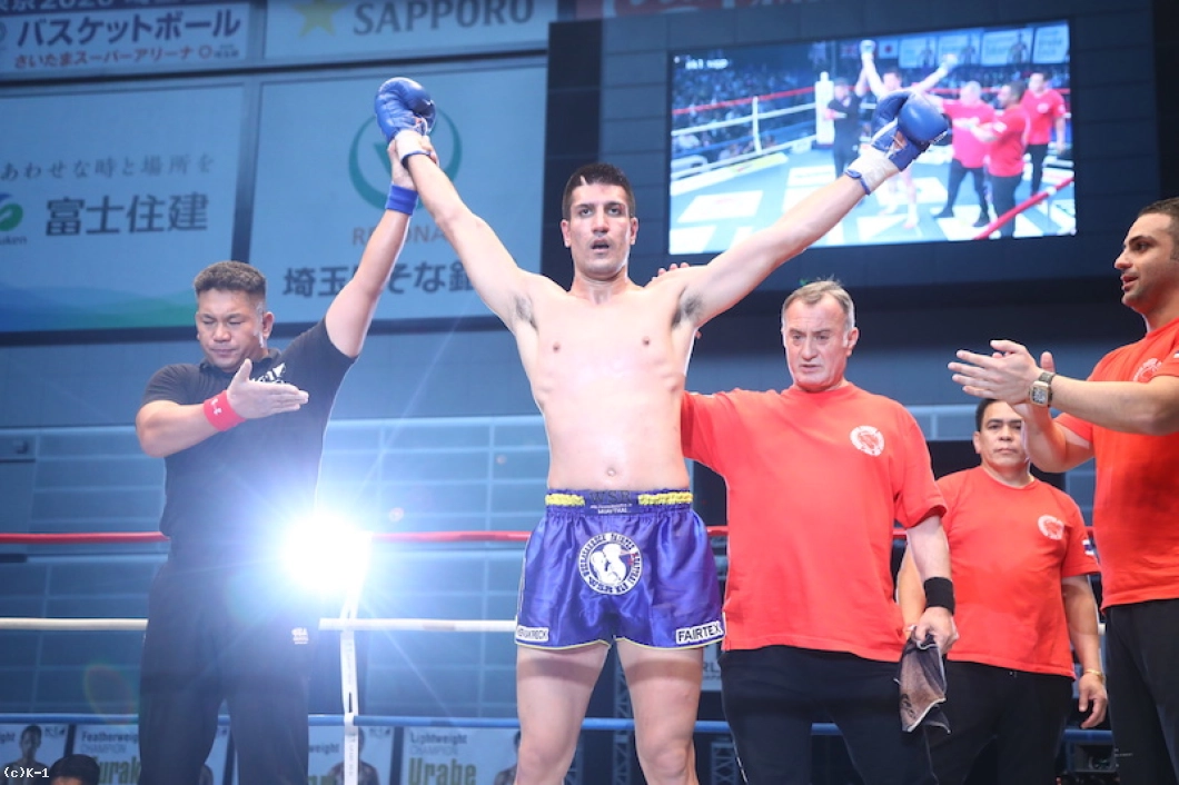 OD・KENはコーナー・ロープを背にした状態でパンチの打ち合いとなるが、右・左とフックを当ててカリミアンと渡り合う。カリミアンもパンチ一辺倒にならずボディへのパンチ・前蹴りも入れる。判定は29-29、30-29(カリミアン)、29-29でドロー。延長ラウンドで勝敗を決することになる。