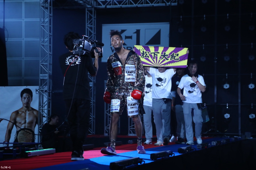 「(試合を終えての感想は?)正直勝つと思ってたんで、予想外な感じで、ビックリです。(相手の印象は?)具体的な感想は特になくて、思う間もなく1Rで終わってしまったんで、ただ単にビックリというだけですね。(今後の目標は?)K-1チャンピオンというのを目指していたんですが、今回こんな形で負けてしまって、まあでもこのまま変わらず、いろいろ考えながら、練習して前に進んで行こうと思います。(最後にひと言)松下選手にKOされてしまったんですけども、自分の持ってる技を何も出さないで終わってしまったんで、次の試合は自分の練習してきた技をしっかり出せるように頑張りたいと思います」