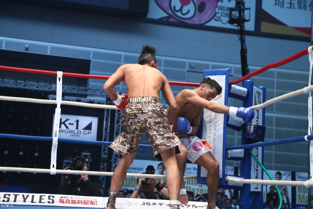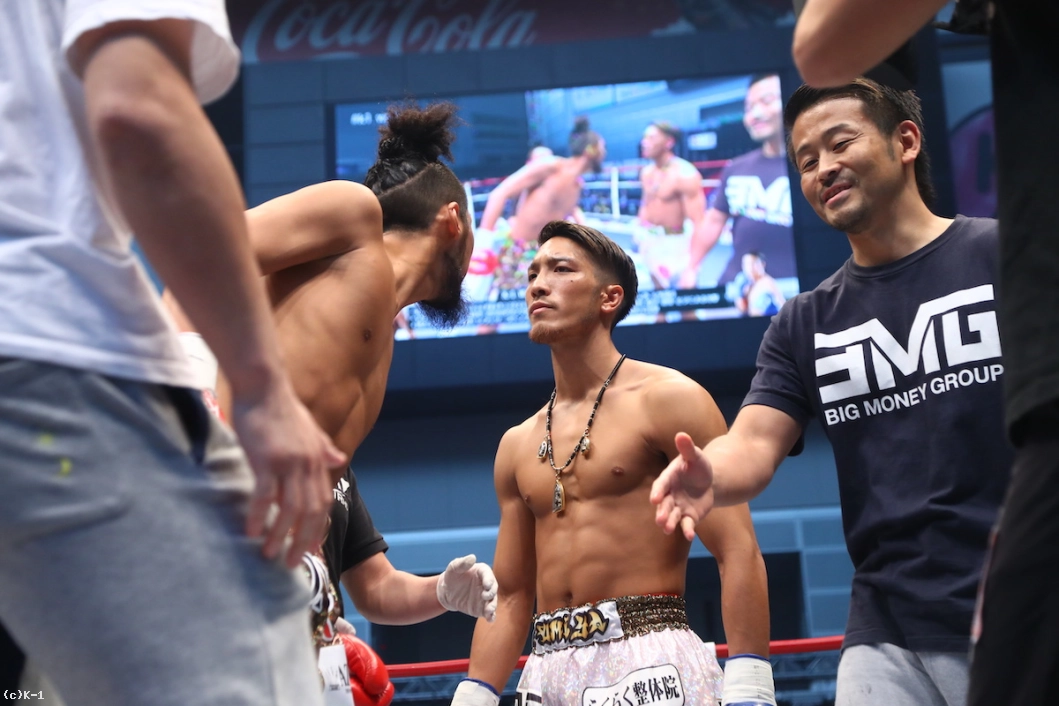 「(試合を終えての感想は?)ホントは2RKOで作戦立ててたんですけど、結果、1RでKOできたんで、ラッキーというか……自分の実力に今日でまたさらに自信がついたって感じです。(相手の印象は?)蹴り、ローキックとかミドルキックをもらったんですけど、見た目通り、なかなかパワーあったんで。僕はしっかり見えてたんですけど、あれを見えないで食らってたらヤバかったかなと。そういうのも込みで1Rで倒せたから、ホントに運がよかったかなと思います。