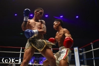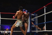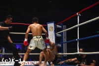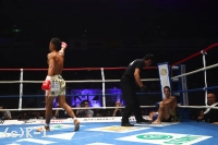 1R、サウスポーの武居とオーソドックスのリーバスはどちらも慎重に見合っていたが、武居は速いステップインから左インサイドボディをヒット。リーバスもすぐにフックを返す。武居は再びステップインしての左ストレートを当てると、リーバスも踏み込んでの左フックを当て返す。前に出てスイッチしながらのパンチ連打で武居を襲うリーバス。しかし武居は左の三日月蹴りから左右のボディフックを連打。これでリーバスを一気に攻め落としてダウンに追い込む。リーバスはなんとか立ち上がるも苦しさからかマウスピースを吐き出す。残り時間は少なかったが武居はそこに左右ボディフックを連打。これで再びリーバスを倒し、1R KOで1回戦を突破した。