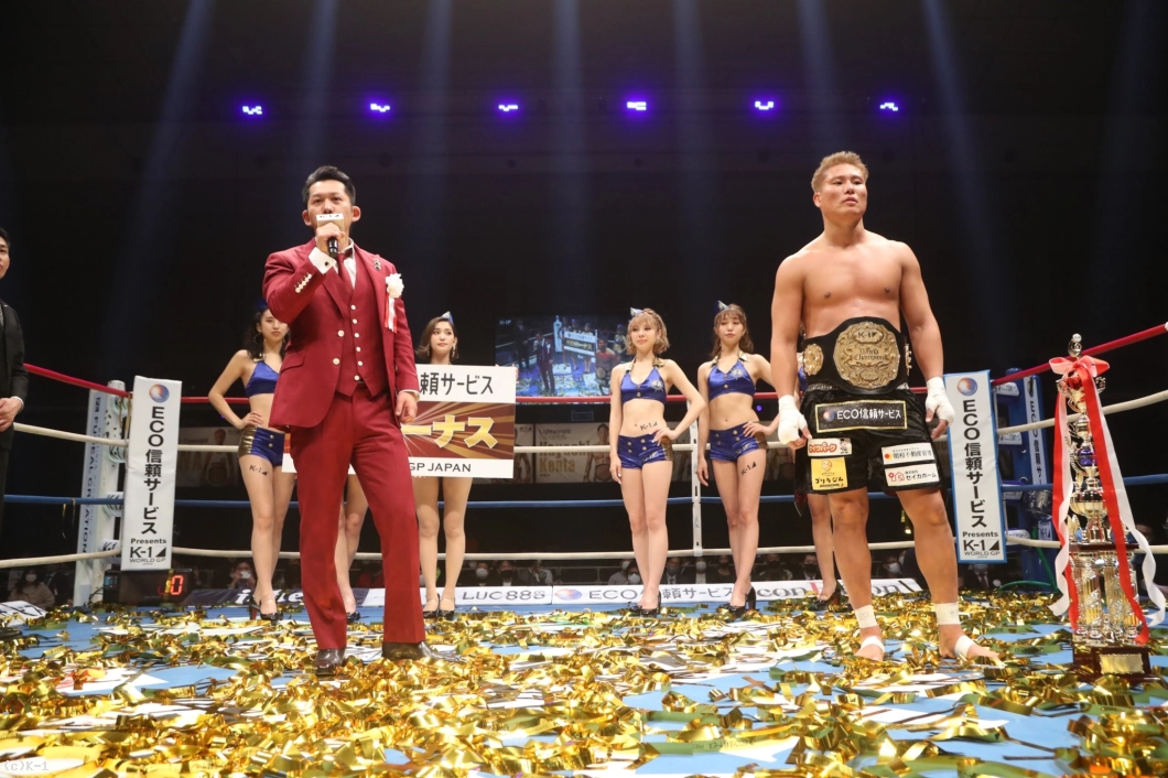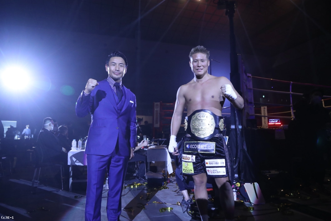 (ファンにメッセージを)応援してくれたK-1ファンのみなさん、ありがとうございます。チャンピオンになってから、自分が盛り上がっていきたいというよりは……それもそうなんだけど、もっと周りを盛り上げていって、結果的にその中心にもっといけるように。またこの町を盛り上げていけるように。自分が盛り上げられることなんて大したことないけど、少しは力になれるようにがんばっていくので、格闘技ファンのみなさんもついてきてほしいです。よろしくお願いします。今日はありがとうございました」