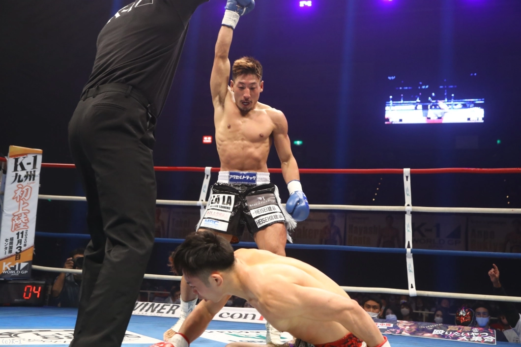(今回、あれだけダウンを取って勝つことは想定していた?)いや、想定はできてると言ったらおかしいので。試合は何があるかわからないので、その中でやってきたこと、やらなければならないことをした結果が、ああいうふうになったのかなと思ってます。(最後のダウンはアッパー?)自分でもまだ終わったばかりなんで覚えてないっていうか。左に当たった感触はあったんですけど、ちゃんともう一回観てみます。(二連敗からどのように自分をコントロールして、勝ちにつなげた?)シルバーウルフに入れさせてもらって、65kgでやるっていうのが去年の4月からスタートして二連敗だったんで、実際に落ち込むっていうか、やってきたことが間違いなのかなとか、自分で考えながらやってきたんですけど。それこそ、シルバーウルフの大宮司代表に相談して、すごい熱い話をしてくれて。『こんなもんじゃないだろ』というところで、この一戦に挑んで。いろんな話し合いもしてきたんで、本当に大宮司さんをはじめ、先輩方や後輩、シルバーウルフの仲間たちに感謝してます。