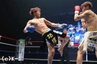 3R、開始早々から互いにパンチを打ち合う展開に。赤田は追いながら左を連打。北村も右を返すが、バッティングで赤田にダメージがあり中断。再開後、互いにギアを上げパンチを打ち合う。北村はヒザ、赤田は左をヒット。終盤、赤田は前進しながら左を連打。下がる赤田を北村が追うが、赤田もパンチを繰り出して反撃。北村が右ハイを決めた直後にゴング。