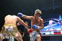 2R、RUIが出るが谷川は押し戻してパンチ。さらに左をヒット。やや動きの鈍ったRUIをロープに詰めた谷川は左右パンチを連打。距離を取ろうとするRUIを、谷川は追っていきさらに左右を連打。さらに右ハイもヒット。