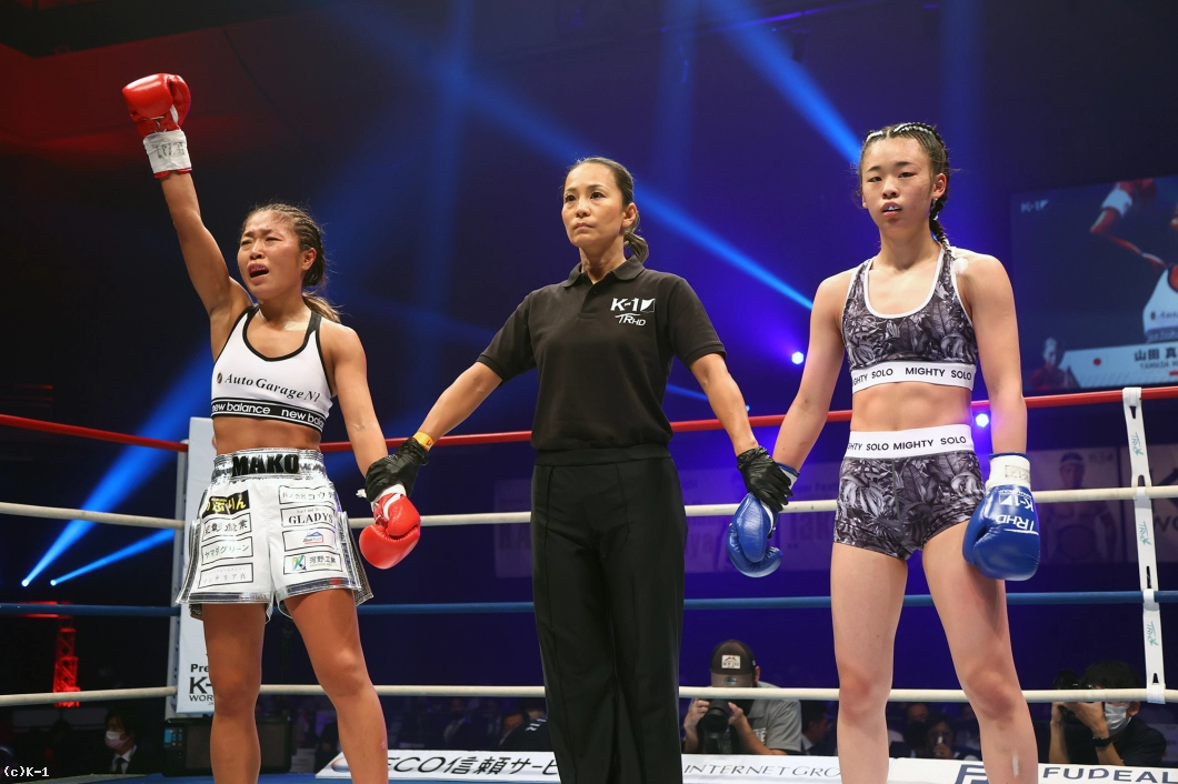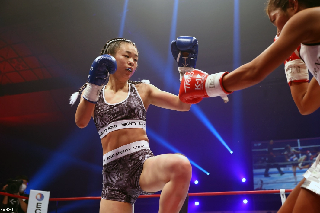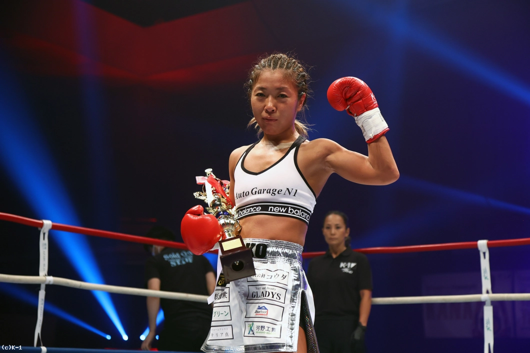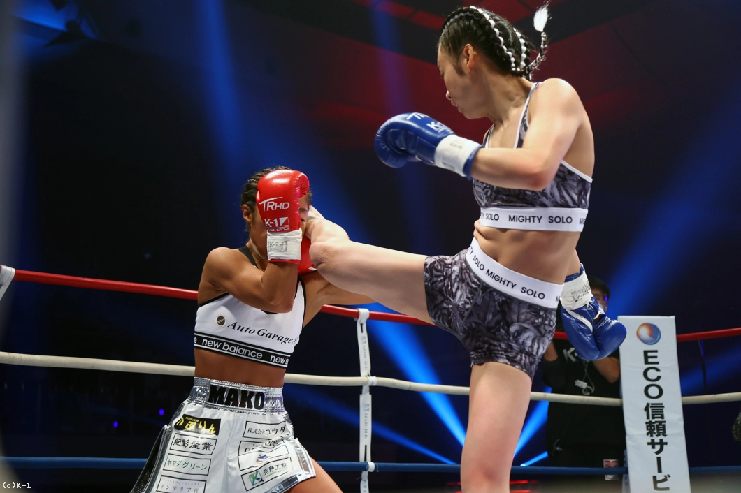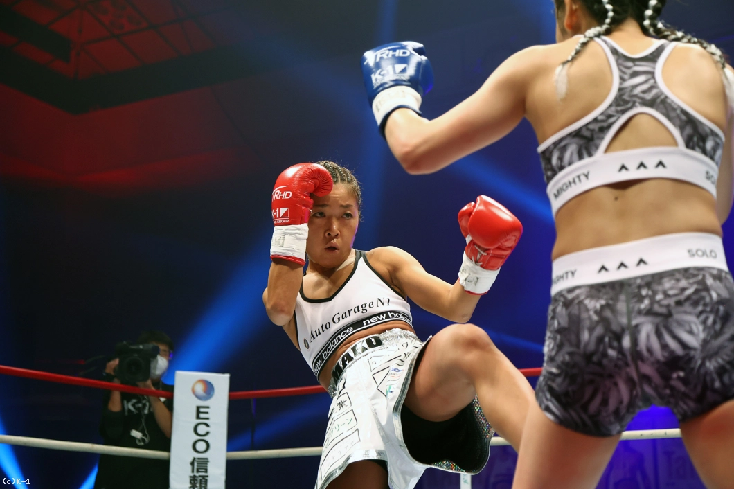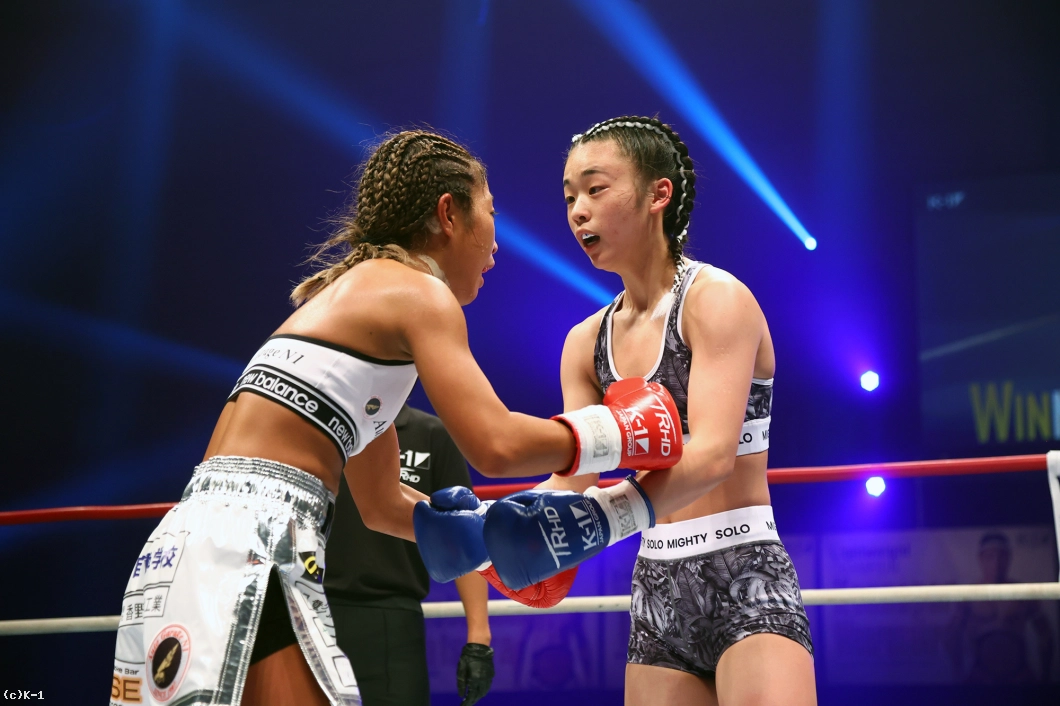 (地元での試合で心強かった?)すごく心強くて、リラックスして試合に臨めたんですけど、内容が、もうちょっと印象づけられるような、『K-1は女子の試合も面白いね』って思ってもらえるような試合にしたかったんですけど、そこが反省点ですね。(今後は?)リベンジしたいっていうのもあるし、ベルトができたら獲りたいっていうのもあるんですけど、今の自分はとりあえず決まった試合を1試合1試合勝って、結果を残していくことですかね。(ファンの方へメッセージを)たくさんの応援ありがとうございました。内容は反省する点がたくさんあるんですけど、自分にしかできない格闘家ストーリーじゃないけど、築き上げていけるようにこれからも頑張るので、応援よろしくお願いします」
