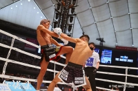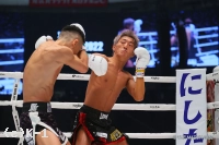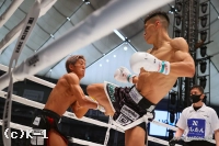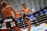 1R、サウスポーの黒田がリングの中心に位置取り、左ストレートを伸ばす。風音が変則的な蹴りを見せると、黒田は強い左ミドルで押し戻す。風音が直線的に距離を詰めると黒田が左ストレート。風音は細かい手のフェイントから右ストレートをボディに伸ばす。風音の出入りに合わせ黒田が左アッパー、左ヒザ。風音はパンチのバリエーションを見せ黒田に的を絞らせない。