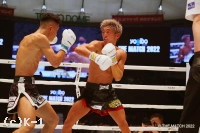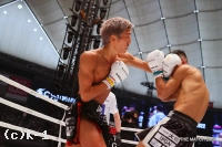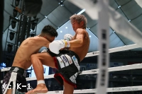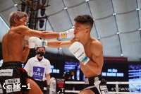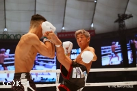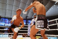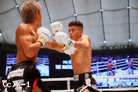 2R、頭から突っ込む風音が右フックを強振。黒田は風音を懐に引き込み左ヒザを突き上げる。黒田の左ミドルがローブローとなり一時中断。再開後も風音が前進し、黒田が入り際にヒザを突き上げる。プレッシャーをかける風音が黒田をコーナーに詰め、オーバーハンドの右フックをヒット。黒田の左ストレートにさらに右フックを被せるカウンターを見せる。