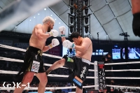 1R、カリミアンが前進しヒザ蹴りを連打。組んだままの攻撃となったため注意を受ける。山下は前進し左右ローキックを強振。離れるとカリミアンは右ストレートを突き刺し、右フックを受けた山下は一瞬動きを止める。山下の左ローがカリミアンの下腹部に入り、一時中断。再開後カリミアンがガードの上から右バックハンドブローを浴びせる。前進する山下にカリミアンは左右フックを連打浴びせるが、山下はふらつきながら左右ローキック。奥足へのローを嫌がったかカリミアンが下がるシーンも。