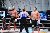 3R、カリミアンの右ローで山下はバランスを崩すが、ゆったりとした構えのまま山下が前進。距離を詰めワンツーを2mの顔面に突き上げる。カリミアンは下がりながらワンツーを突き刺すも山下は倒れず。バックハンドブローの直撃を受けても笑顔のまま山下は前進する。カリミアンは打ち疲れたか、パンチが大ぶりに。両者決め手がないまま試合終了のゴングを迎えた。判定はジャッジ3者の支持を集めたカリミアンの勝利。タフな山下を手数で圧倒し勝利を引き寄せた。