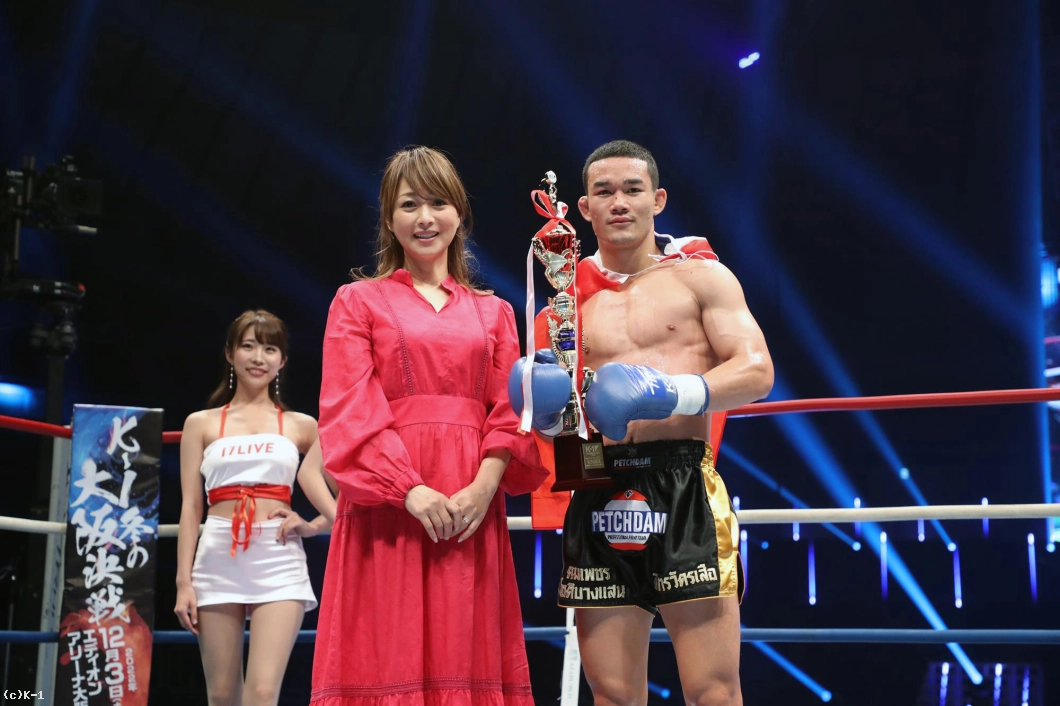 (K-1ルールで戦ってみて?)初めてということで、やはり戦いづらさはありました。ずっとムエタイで戦ってきて、今日が初めてのK-1ルールで、足を掴んでしまう場面もあったので、もし次に参戦する機会があれば、修正して臨みたいと思います。(王座については?)今日玖村選手に勝てたことで、自分もタイトルに挑戦する権利を得られたと思っています。K-1チャンピオンになりたいと思っているので、タイトルに挑戦する機会を与えてほしいとお願いしたいです。もしチャンピオンになれたとしたら、自分の人生の中でも一番大きなタイトルになるので、絶対に狙っていきたいです。