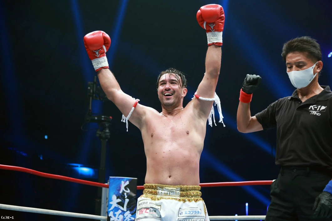 「(試合の感想は?)K-1のリングで判定で勝ちました。メチャうれしいです。本当はKOしたいけど、ずっと1Rから3Rまで頑張って、KOはできなかったけど、判定で勝てました。うれしいです。(相手の印象は?)タフだったですね。強かったです。(75kgの試合が続けて組まれていましたが、王座に向けては?)75kg、盛り上がってるね。僕も神保選手には判定で負けましたけど、今日、松倉選手が負けました。僕はこの試合で勝ちました。僕と松倉、やるしかないですね。中村プロデューサーが75kgのベルトを作ってくれたら頑張りたいし、チャンピオンになりたいです。(ファンにメッセージを)皆さん、ダニロ・ザノリニ、日系ブラジル人です。20年前に日本に来て、日本人と一緒。K-1のリングでお客さんが盛り上がるように頑張りたいです。応援よろしくお願いします。また次のK-1で頑張ります。ありがとう! ありがとうございました!」