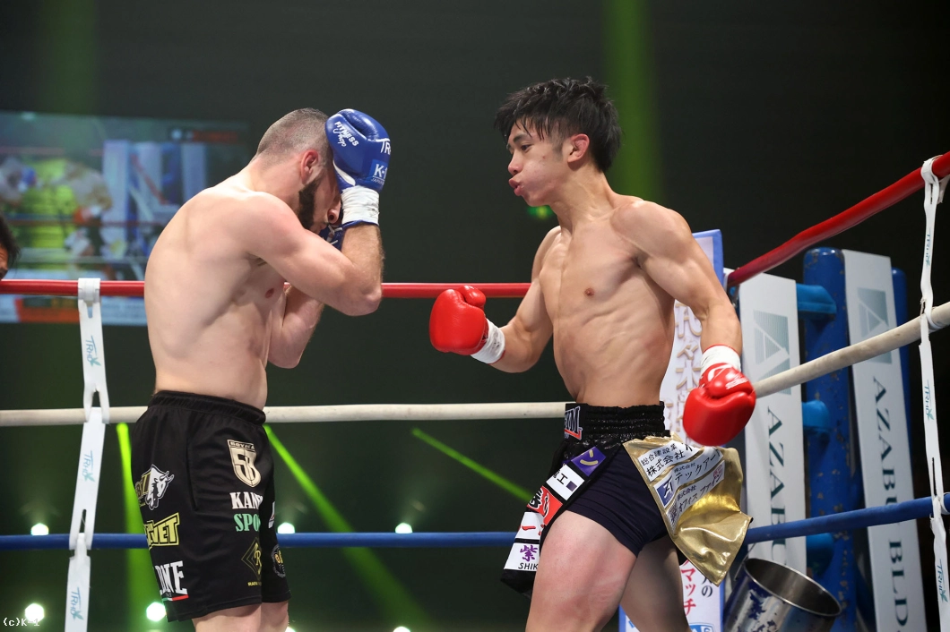 3R、ババヤンはローキックの対策かサウスポーに変わって前進。壬生狼はこれに右ミドル、ヒザ蹴りと繰り出し対抗する。ババヤンもストレートを決めるが、壬生狼はステップを止めず連続では被弾しない。ローとミドル、パンチを当てると壬生狼はフットワークしてヒット&アウェー。ババヤンの反撃を回避していく。