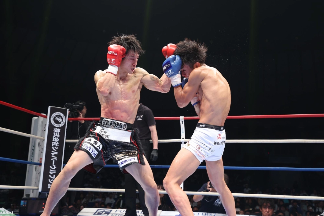 1R、玖村はカーフキックでスタート。金子は前蹴り。玖村はカーフキック。金子は左のパンチ。互いに単発で攻撃をかわす。金子は左ボディ、右を伸ばす。玖村の左に右を合わせる金子。金子の左ボディ、右が入る。だが、玖村が右を返す。やや金子が押すも、玖村は一歩も引かなかった。