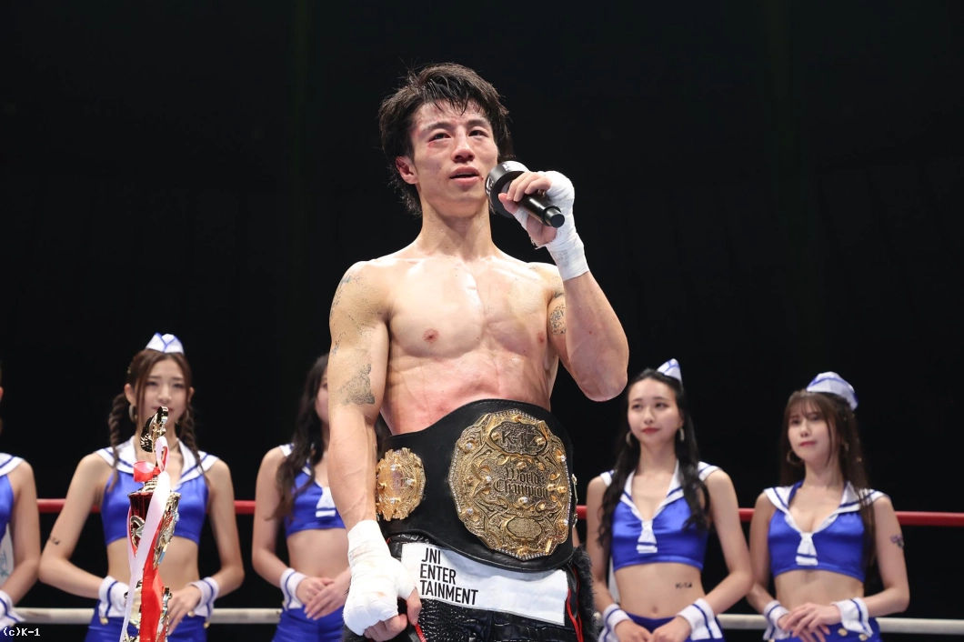 「前回の玖村選手との試合で僕が負けて、二回目は勝ったけど、THE MATCHで僕が負けて。応援してくれる人のために戦いました。実力がない中でも、必死に努力して報われるのも見せたくて、ちょっとでも僕を見てヤル気になってくれる人がいればいいかなと思って戦いました。K-1代表としては、まだまだなんで、鈴木(真彦)選手とは、またやらしてください。応援してくれたファンのみなさん、ありがとうございました」