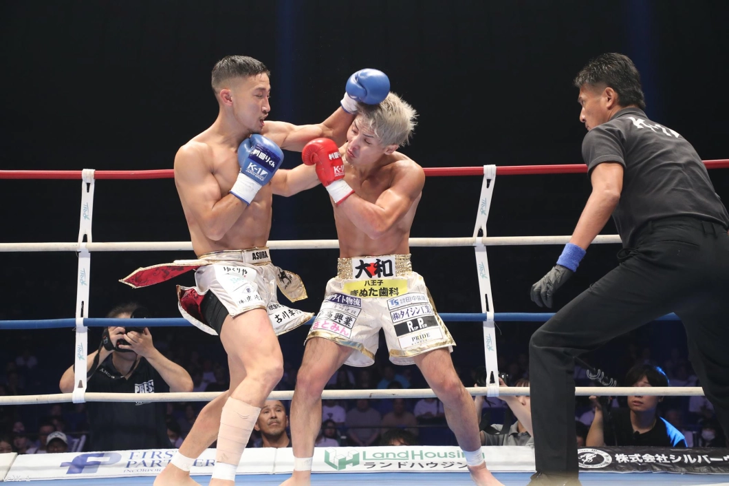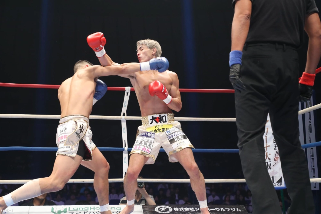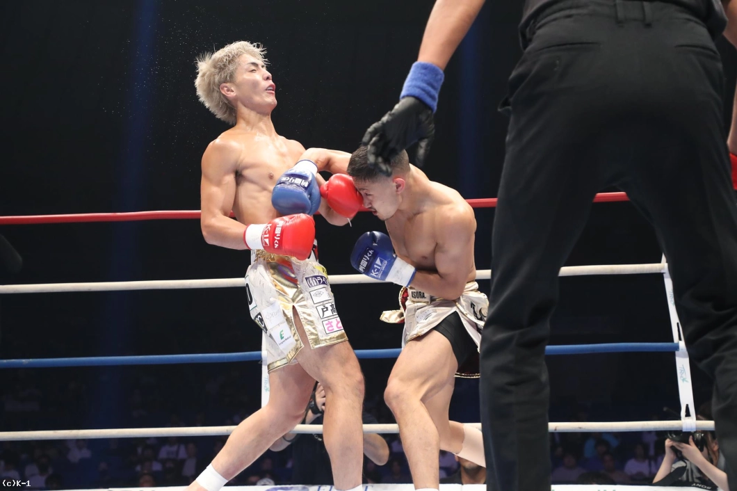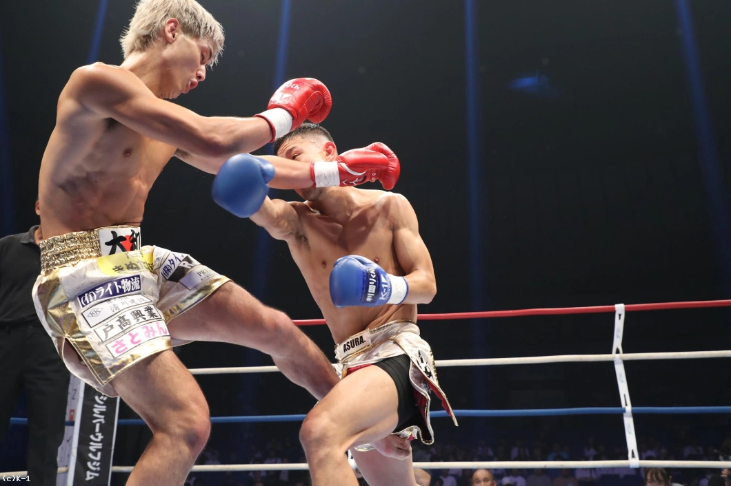 1R、サウスポー構えの里見は、左フックを強打。伊藤は右ロ―キックを連発。里見は左ロ―キックをヒット。伊藤は前へ出て左に入っての右ストレート、左アッパーへつなげる。里見は勢いに押されつつも、右を合わせる。伊藤は右を打っていく。里見はカウンターの左アッパーをヒット、さらに左ストレートを合わせて、伊藤のアゴを跳ね上げた。