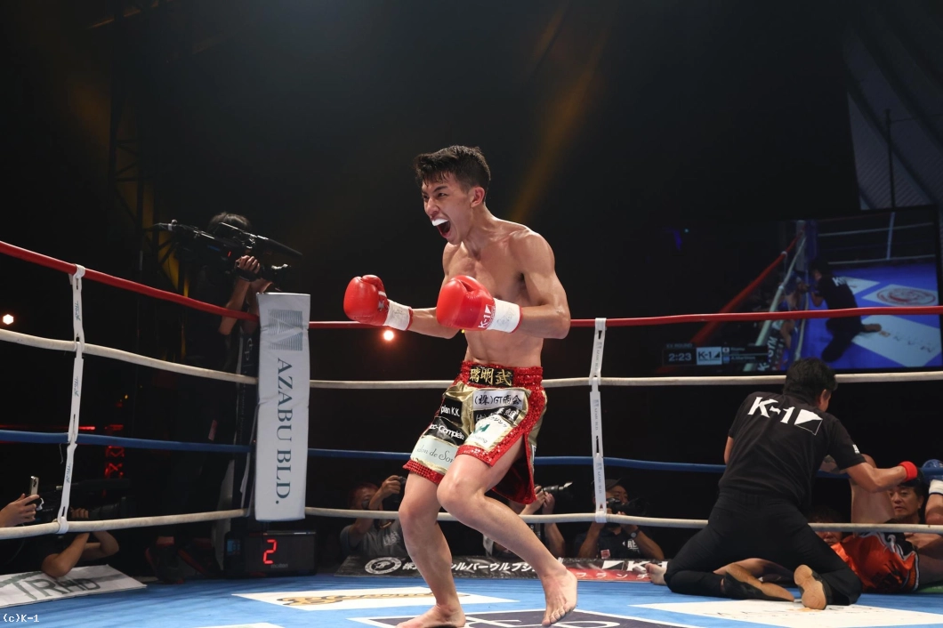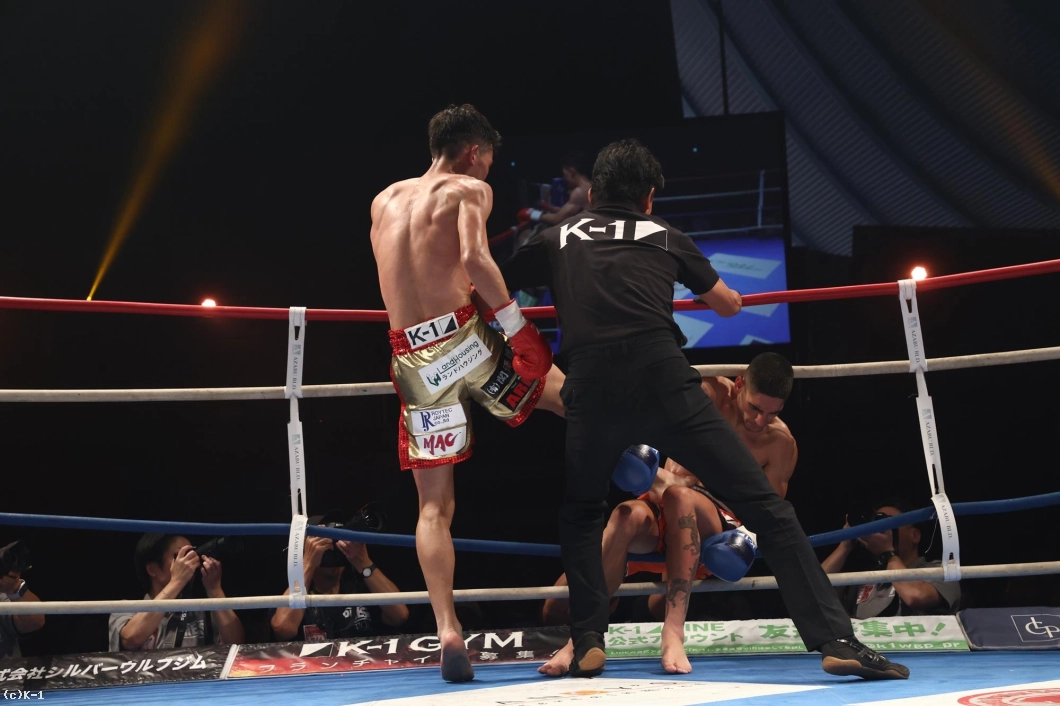 延長ラウンド、璃明武は右カーフキック。これでマルティノスはダウン。立ち上がったマルティノスに璃明武は、ミドルキックからカーフキック連打でKO勝ち。璃明武が準決勝進出を決めた。