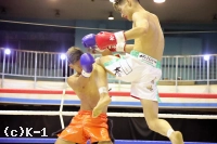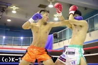 1R、サウスポーの橋本が左ミドル。入江はインローを蹴って、ジャブからワンツーを狙う。互いに蹴りで距離を探る中、橋本が左ストレートを突き刺して先制のダウンを奪う。2Rも橋本が左の蹴りを蹴り分けながら、飛びヒザ蹴り直後の左ストレートでこの試合2度目のダウンを奪う。3R、挽回を狙う入江は積極的にパンチで出ていくが、橋本も左のパンチを打ち分けて応戦。左ストレートで2度のダウンを奪った橋本が大差の判定勝利を収めた。