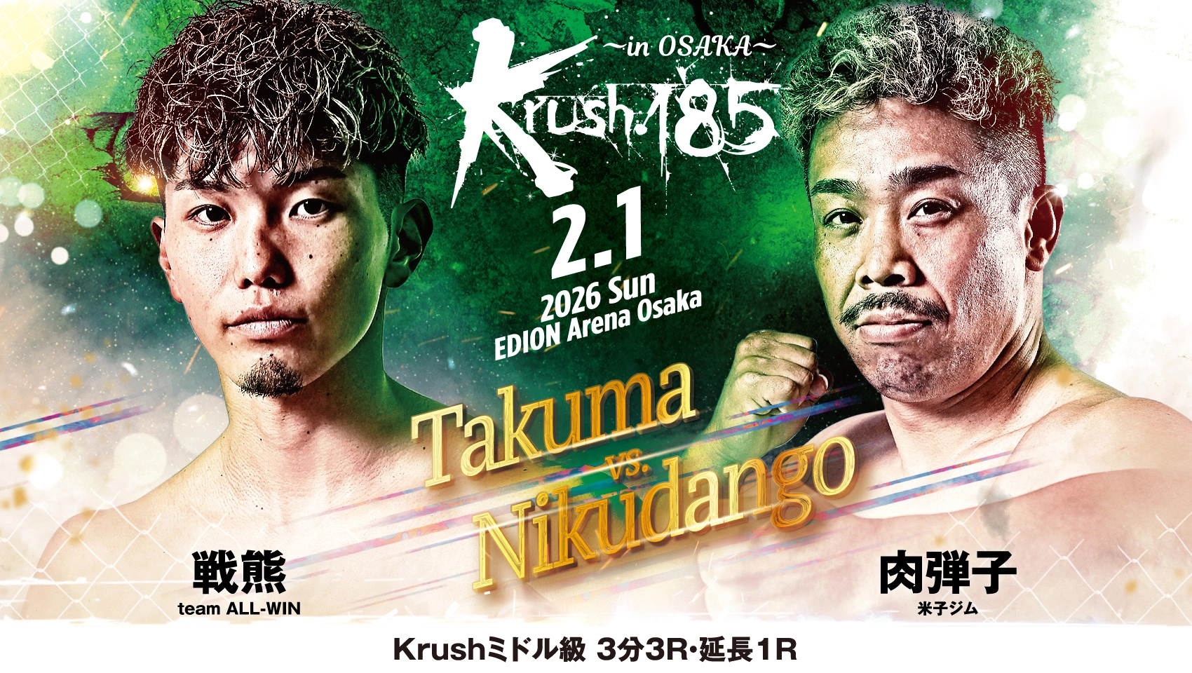 2月1日(日)エディオンアリーナ大阪(大阪府立体育会館第2競技場)にて開催される「Krush.185 ~in OSAKA~」の[第3試合/Krushミドル級/3分3R・延長1R]で対戦する戦熊vs肉弾子のコメントを公開!