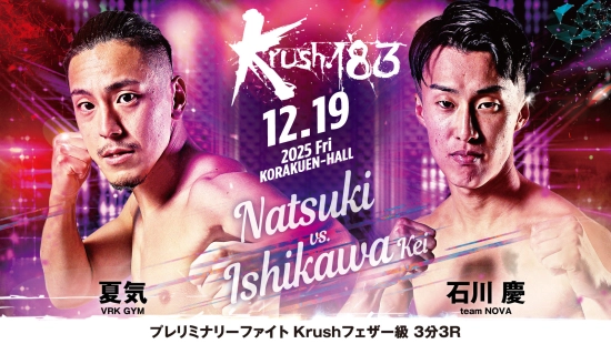 「Krush.183」12.19(金)後楽園 夏気vs石川慶 中止のお知らせ
