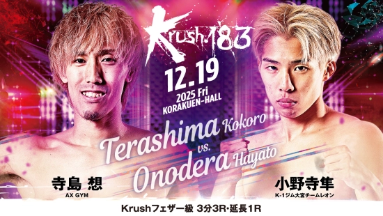 「Krush.183」12.19(金)後楽園 寺島想vs小野寺隼 コメント公開! 「レベルの差、経験の差をみせたい」(寺島)vs「トップ戦線に絡んでいける実力がある事をアピールしたい」(小野寺)
