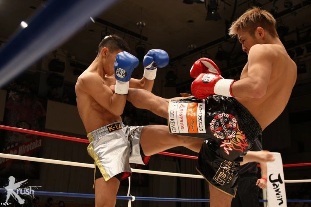 2R開始のゴングと同時に飛びかかっていく小澤。伊藤が右ミドル、小澤が左ローを蹴る。お互いに激しく蹴り合う展開の中、小澤は左ミドルと左ロー。伊藤が右のヒザ蹴りで前に出ると、小澤は右フックを返して前に出る。小澤が左ローを連打すれば、伊藤は右ハイキックを蹴って譲らない。