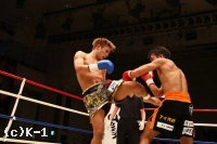 1R、神戸が右ミドルを蹴るとサウスポーの小澤もローを蹴り返す。神戸は顔面にパンチをまとめて右ボディ。小澤はローを蹴って、左ボディから顔面への右フックにつなげる。小澤が左ミドル、神戸が右ストレートを打ってラウンド終了となった。