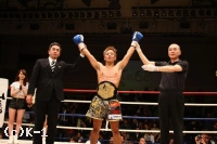 「(試合を振り返って?)反省点ばかりです。でも、こうやって獲れたのは自分の力だけではなく、みなさんのおかげなので感謝しています。(反省点というのは?)WILDRUSHの後半2試合でモチベーションが上がらなくて、無理矢理上げたというか。タイトルマッチはやる気マンマンで、闘争心もいつもの何倍も出ました。でも、コンビネーションが少なかったので改善したいと思います。(相手の印象は?)Krushではキャリアは関係ないと思っているので。神戸選手はパンチの打ち分けがうまかったですね。想定どおりだったと思います。