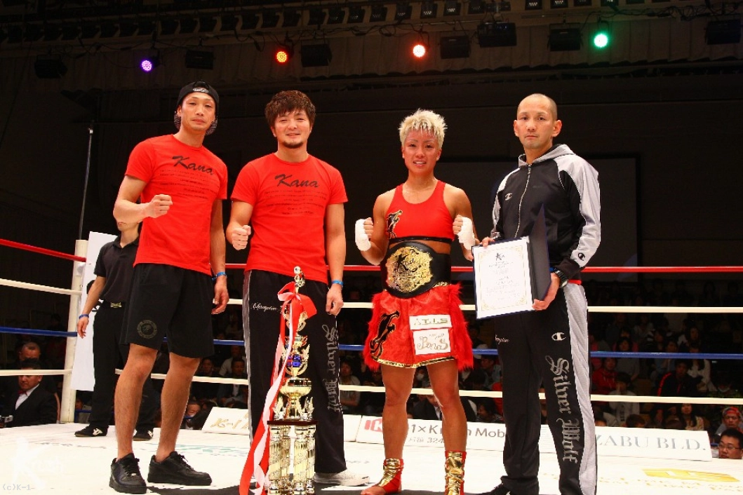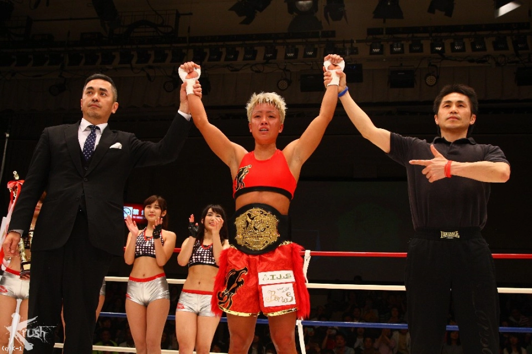 (今後の目標は?)このまま無敗で駆けあがってKrushを盛り上げて。そうすれば女子の格闘技も盛り上がると思うので、その上に立って引っ張っていきたいと思います。(防衛戦はどんな相手と戦いたい?)強い相手とやりたいです。KANAが負けるんじゃないか?と思われる相手とやりたいです。(ファンへのメッセージは?)本当にたくさんの応援で勝つことが出来て、チャンピオンになれました。これからまだまだ強くなるので応援よろしくお願いします」