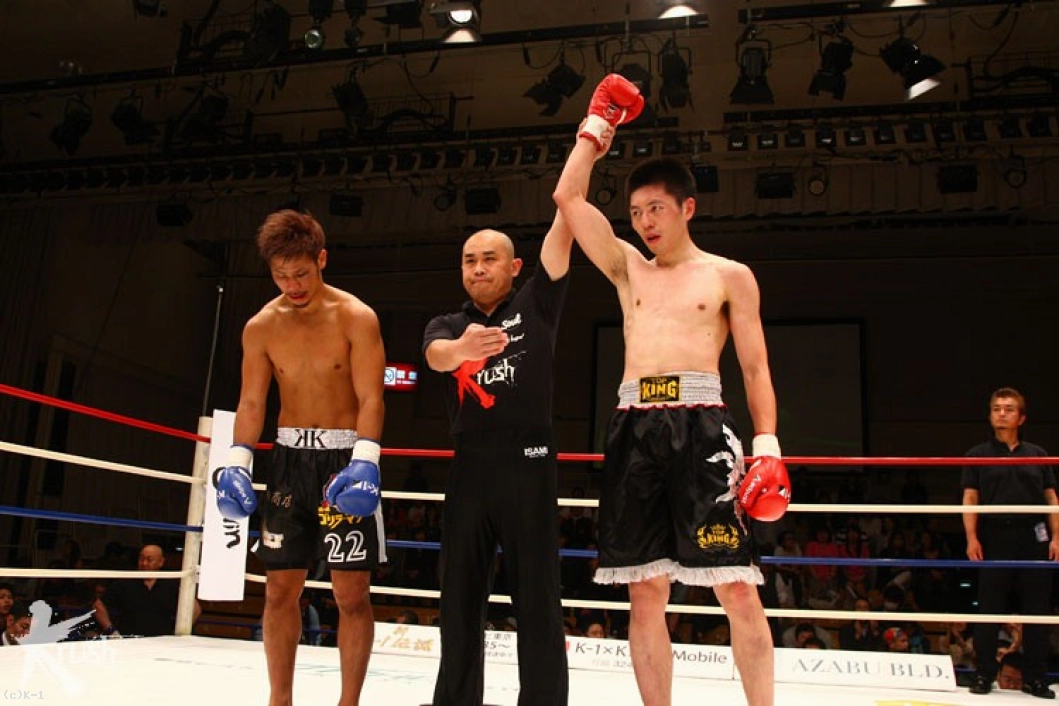 判定は3者30-27で松本。右ローで3Rにダウンを与えて勝負を決めた。