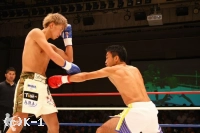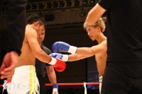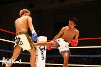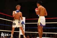 2R、右ボディフック、右ローと神戸が前に出る。佐野はこの出足を止めんと右ローを入れ、神戸が入ってくるところに左フック、ボディへのヒザを放つ。神戸を押し返して右ローを入れ、フットワークで距離を作る佐野。しかし接近戦の打ち合いでは神戸のパンチの精度が勝り、右クロス、左フックと佐野をとらえる。