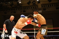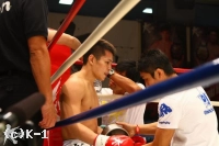 2R、小鉄は距離を作ってジャブ、顔&ボディへの前蹴りと中島のリズムを崩す。中島はガードを顔の前に立てて小鉄に向かい、左ローを打ち込み嫌がらせる。しかし小鉄はプッシングして中島を下がらせ、右ストレートでもとらえて中島にペースを把握させない。ローは浴びる小鉄だが、前蹴りで止め中島に進入を許さない。