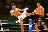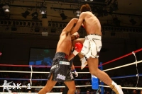 3R、跳びヒザ、パンチのコンビネーションから右ローを打ちつける畑だが、中村はやはり下がらない。2Rに手応えのあった左ボディフックを畑に打ち込み、さらに顔への左右フックに力をこめる。追われる畑だが、ボディへの前蹴りを返すと中村もこれを嫌がる。中村は右フック、畑は右ハイと当てるがどちらもダウンシーンはなく終了となる。