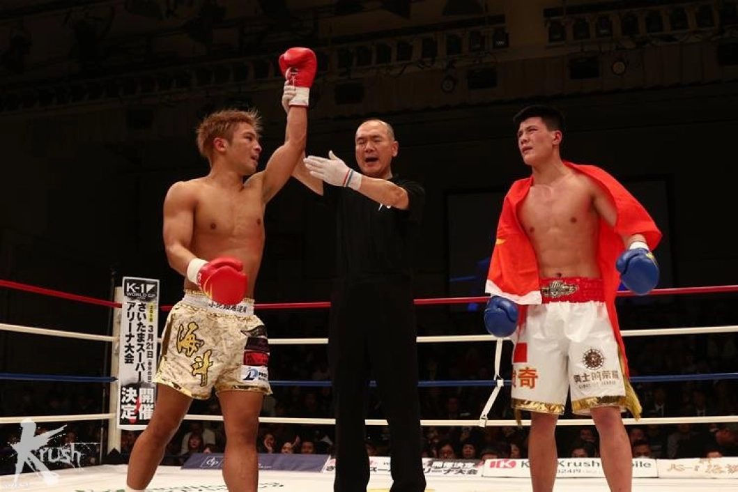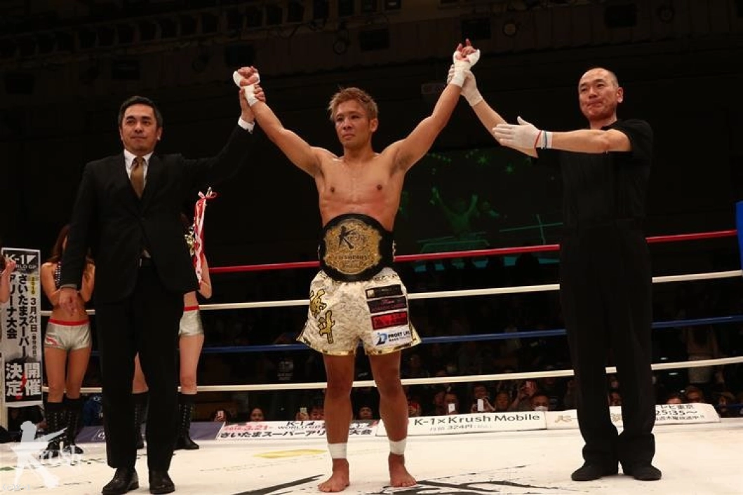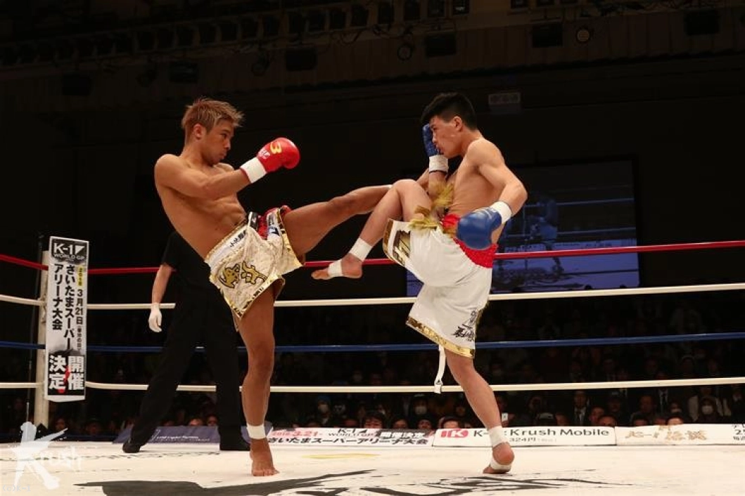判定は30-29、29-29、30-29の2-0で小澤。ライバル武尊がリングサイドで見守る中、王座を守った。