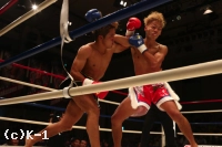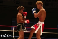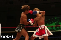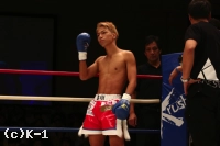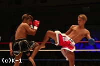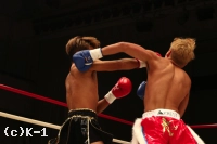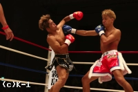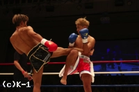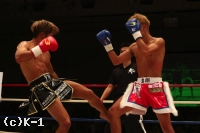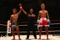 3R、大岩はやはりスピーディーなローで亀本の出足を止める。そしてボディストレートを打ち込み、さらに左ロー。亀本のヒザには左ストレートのカウンターを放ち、亀本がさらに来るとステップで距離を外す。両者左ストレートの相打ちから亀本が前に出てくるが、大岩はそのまま来させず前に出返す。顔面前蹴りを当てる亀本。そして右ジャブから左ストレートも大岩にヒット。さらにハイキックと攻勢をまとめるが、大岩も左フックを当てて3Rを終了。判定は30-29、30-29、30-29の3-0で大岩。2Rにパンチでグラつかせた大岩が勝利した。