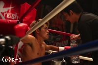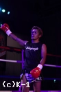 「(試合を振り返って?)倒したかったです、それだけです。(相手の印象は?)思っていたよりもイヤな攻撃がなくて、練習どおり当てられたかな、と。(ひさびさのKrushのリングは?)試合に出る前は怖かったです。ちょうど1年前は負けていて。(そのときに負けた西京選手が今日のメインで58kg王座に挑戦するが?)格闘家としては西京選手に勝ってもらわないとイヤなんですけど、人間的には小澤選手が好きなので小澤選手を応援してます(笑)。(今後の目標は?)-55kgのトップ戦線に加わっていきたいなと思います」