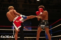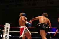 2R、大岩は右ジャブから速い左ローを当てる。亀本もしかしローを浴びながらもリーチで勝る左ストレートを伸ばしていく。左ローこそ当てる大岩だが、パンチで行こうとすると亀本の左ストレートが飛んでくる。しかし大岩も亀本がヒザで来ると左ストレートで狙う。左ストレートを当てた亀本だが、大岩はここで逆に左フックを決め、これで亀本をフラつかせる。