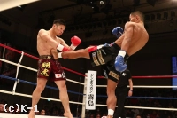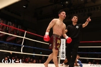 桝本は前蹴り、ハイキックに後ろ回し蹴りとトリッキーな蹴り技で江川を追い、左フックを放つとこれは江川の左フックと相打ちになるが、倒れたのは江川。これで江川にダウンが宣告され、立ち上がる江川だが終了のゴングとなる。判定は29-28、28-28、29-28の2-0で桝本。終了間際にダウンを奪い、勝利を手にした。