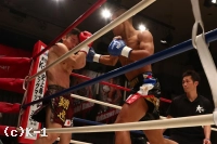 3R、江川はワンツースリーフォーと連打をまとめ、その後でサッと離れて距離をあける。桝本はパンチだけでなく前蹴り・右ハイキックと攻撃を散らすが、江川はやはりガードを固め、桝本が詰めてきても有効打を与えない。そして桝本の左フックに右フックを合わせてフラつかせ、跳びヒザを放ってさらに桝本に迫る。