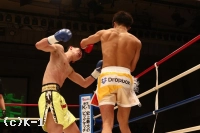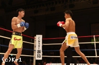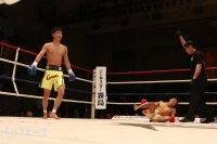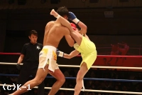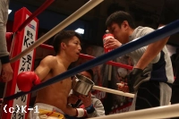 3R、ダウンのビハインドがある鍋島だが、安達の右ストレートが上下に振るわれて前に出られない。しかし安達が打ちに来たところへ右ストレートを振るい、鍋島はそこからボディへのヒザを繋いで前に出る。だが、さらに出ようとすると安達の右ストレートと左フックに阻まれる。そして再び安達が鍋島の前蹴りをさばきつつ、右ストレートと左フックで鍋島をロープに詰めて試合終了となる。