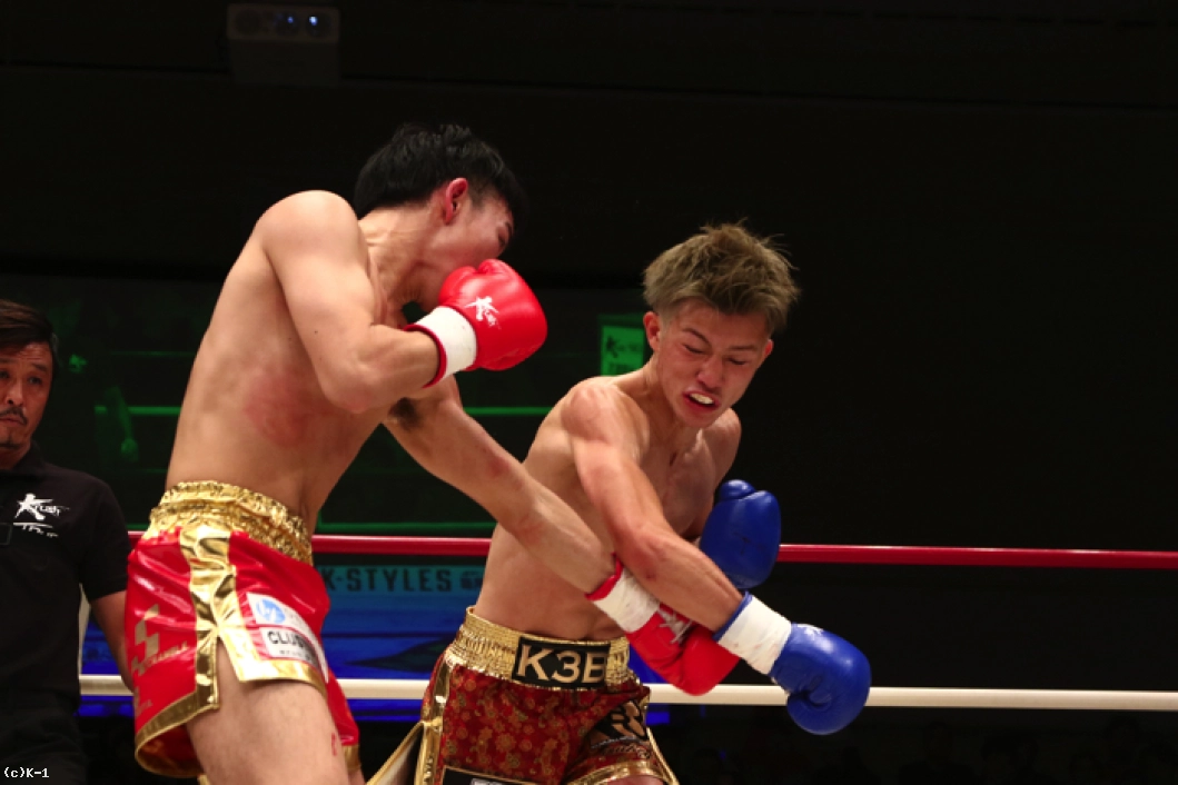 3R、ロープ際に下がる玖村に対し、小倉は被弾に構わず前へ出て、左ボディフック、右ストレートと玖村に迫る。玖村はバックブローで展開を変えんとするが、小倉は止まらない。玖村にローを入れ、ジャブ・右ストレートでさらに迫る。組んでこの勢いを押さえんとする玖村にレフェリーからクリンチの注意が与えられる。パンチで迫りくる小倉の隙を見て玖村はハイキックを飛ばしていく。判定は29-29、30-29、29-28の2-0で玖村。弟の将史に続くKrushデビューを勝利で飾った。