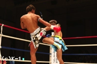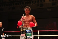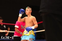 「(試合を振り返って?)ずっとKrushではバンタム級(‐53㎏)でやっていて、今回スーパー・バンタム級(-55kg)に上げて初めての挑戦だったんですけど、減量はあんまり変わらないので…。それでああいう試合になっちゃったんですけど、自分の中ではいい形でできたかなって。セコンドの声も全部聞こえて、作戦どおりにやれたので良かったと思います。(対戦相手の印象は?)凄くミドルを蹴ってくる選手だと思っていて、やりづらいのかなと思ったんですけど、案外ジャブが入りましたね。(今後の目標は?)いまスーパー・バンタム級の王座決定トーナメントに出ていて、あと2回勝てばチャンピオンになれるので。ここで優勝したいと思います」