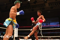 3R、森坂は左右ミドルからジャブ。軍司はローとパンチで応戦。森坂はミドルから回転してのバックブロー、ジャンピングバックキックなども見せる。軍司は中盤に左フック、右ストレートをヒットさせ、2分頃にはヒザも入れる。森坂はジャブからミドル、右ハイ。軍司はワンツーを繰り出すも、なかなか森坂を捕まえきることができない。終了間際には森坂がバックブロー。判定はジャッジ2名が軍司を支持し、軍司が判定勝利。これにより、トーナメント準決勝で軍司vs椿原の対戦が決定した。