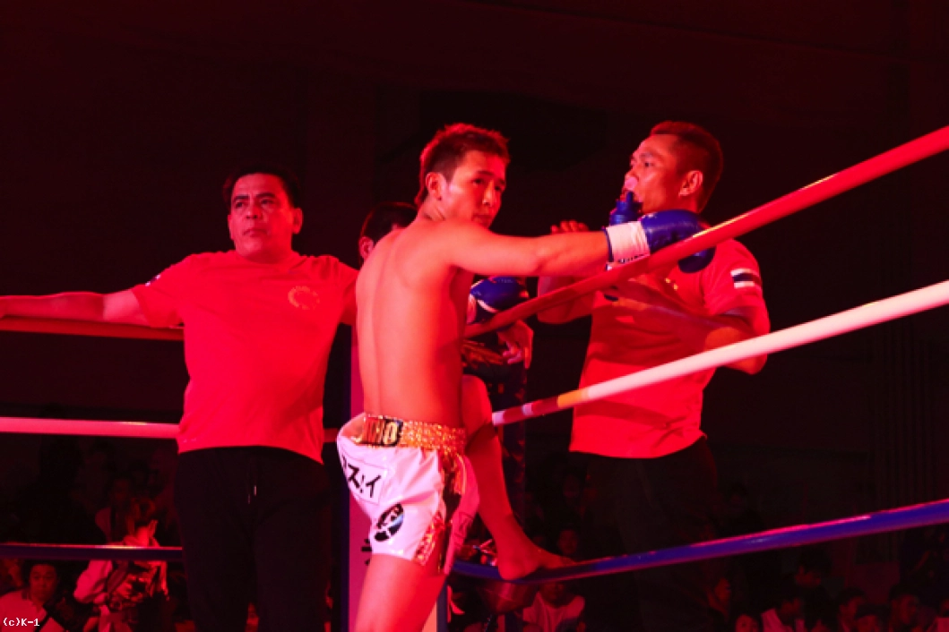 「(試合を振り返って?)1~2Rが終わって、対戦相手の方にローが全然入らなくて、ヤバいなとアセりながら3Rを迎えて、倒せたのが自分でビックリしました。(対戦相手の印象は?)いろんな選手と戦っているみたいで、ベルトも3本巻いているということで、やっぱり簡単な相手では全然なくて難しかったです。