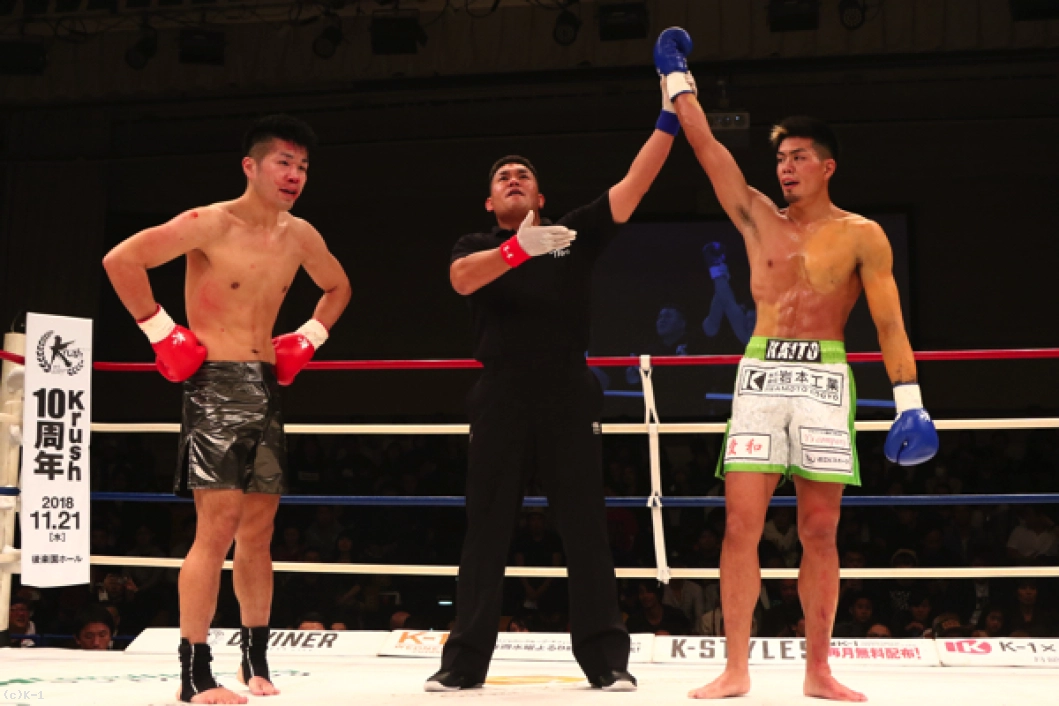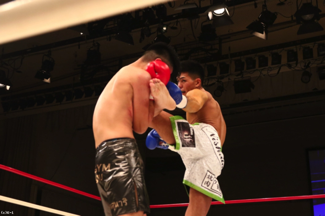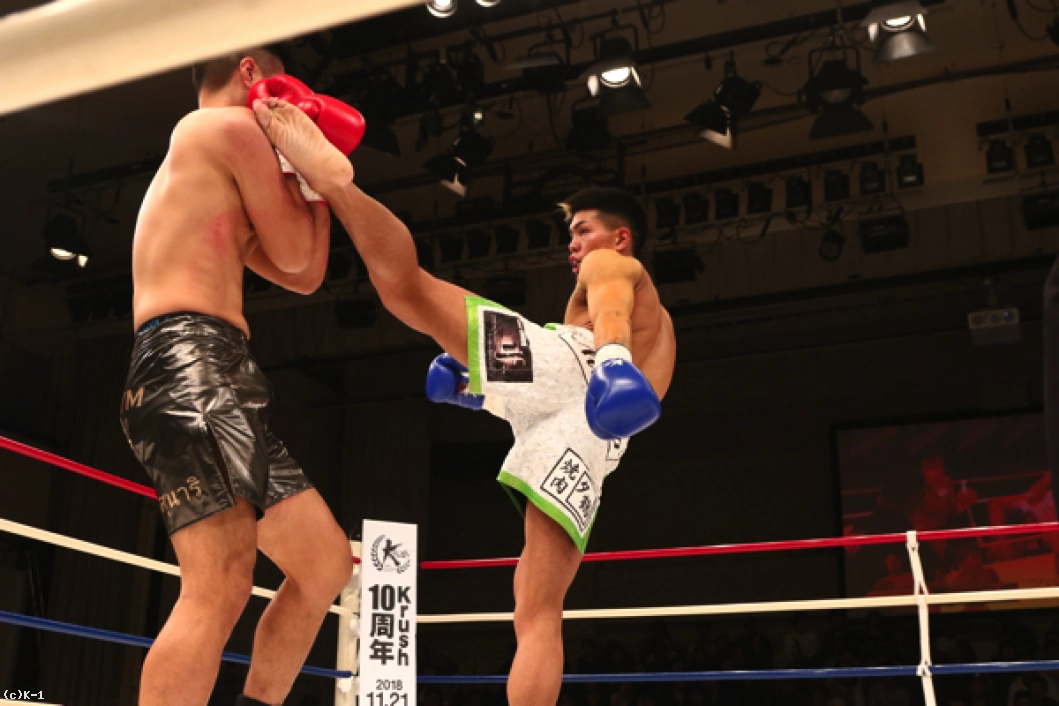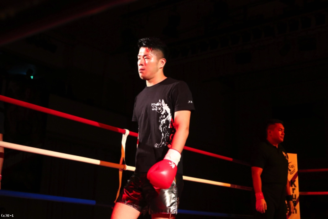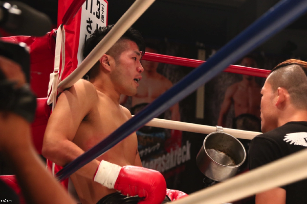 「(試合を振り返って?)復帰戦ということで倒さなアカンなと思ってたんですけど、判定ですみませんでした。(対戦相手の印象は?)戦う前と変わらないですね。(今後の目標は?)会長とベルトを獲ると約束したので。僕の階級、凄いヤツが多すぎてどうしようかなって感じですけど、一人ずつシバいていきます」