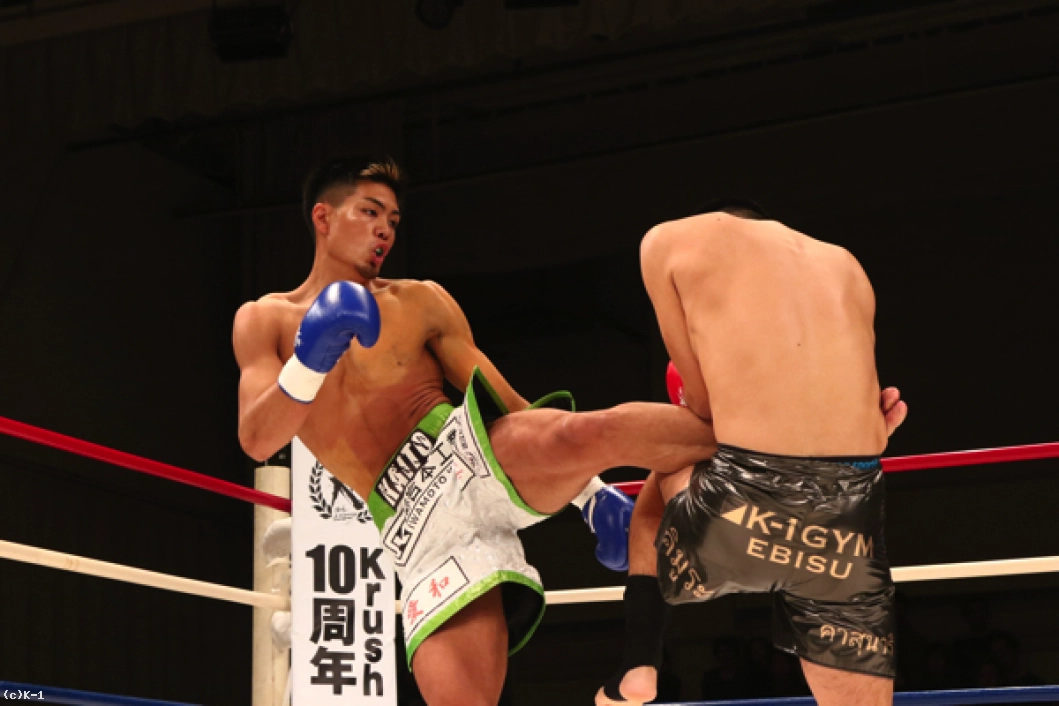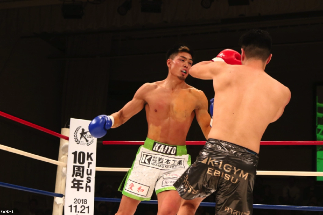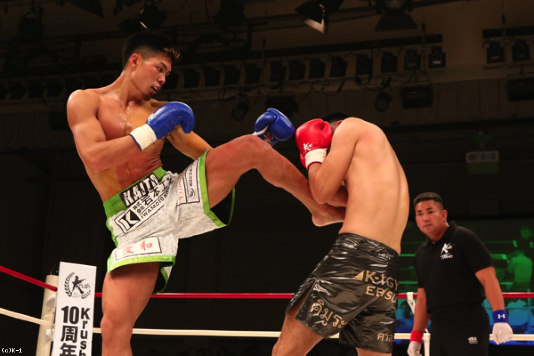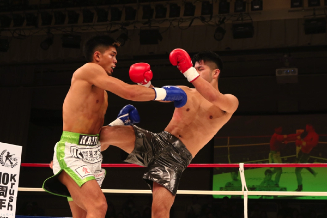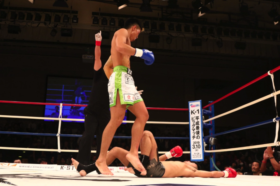 「(試合を振り返って?)復帰戦ということで倒さなアカンなと思ってたんですけど、判定ですみませんでした。(対戦相手の印象は?)戦う前と変わらないですね。(今後の目標は?)会長とベルトを獲ると約束したので。僕の階級、凄いヤツが多すぎてどうしようかなって感じですけど、一人ずつシバいていきます」