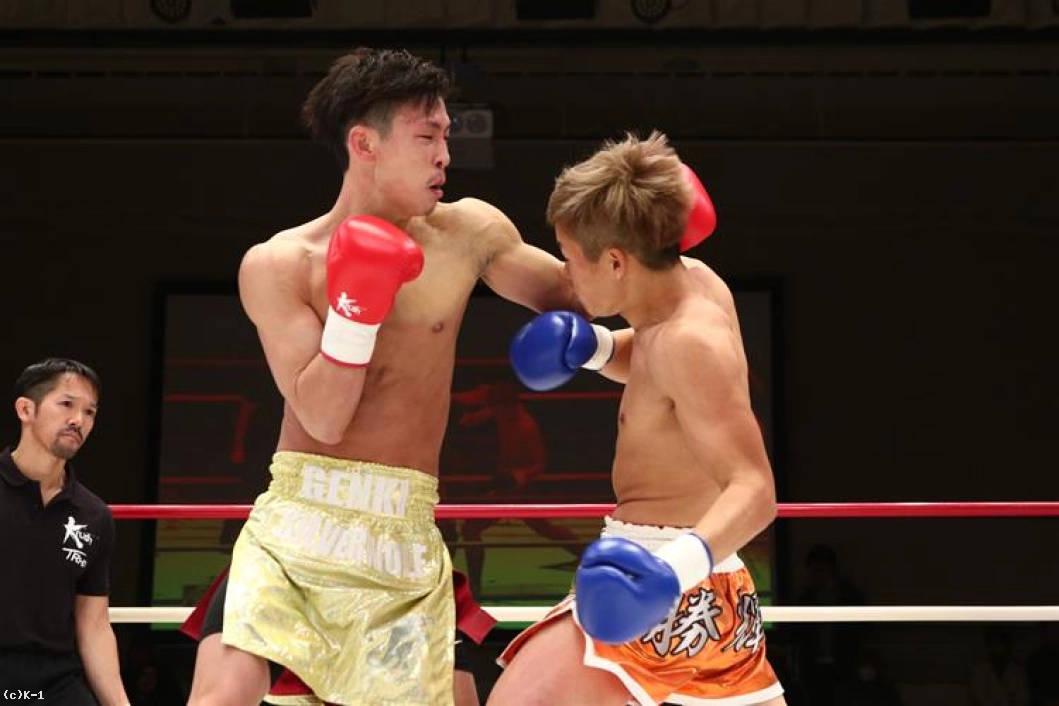 3R、勝輝は変わらず手数が多く速いコンビネーションで攻めるが、安達はボディへのヒザ、右クロスと威力で上回って勝輝を下がらせる。しかし勝輝も顔を紅潮させながら応戦。ジャブ、左フックを振るうが、安達はジャブ、右クロスで襲い、勝輝を次第に追い詰める。ジャブで下がらせんとする勝輝だが、安達もすぐまた前に出返してくる。勝輝が右ストレートを入れれば安達もすぐさま右ストレートを返す。両者打ち合いのヒットする数は互角だが、安達がやはり威力で上回るか。判定は28-28、29-28、29-28の2-0で安達。打ち合いの一戦を制した。
