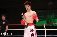 「(試合を振り返って?)Krushの第100回の大会に出られて凄い光栄です。一試合目からKOが続いてたので、僕も続きたかったんですけど、龍斗選手が強くてなかなか倒せなくて。勝ててよかったです。(対戦相手の印象は?)凄いスタミナがあるっていうのはわかっていて。僕もスタミナを強化してきたんですけど、ちょっと今日は動きが悪くて。(今後の目標は?)今回、ちょっと不甲斐ない試合というか、自分の中ではいい戦いはできなかったですけど、大阪のK-1に出られるようにもっと練習を積みたいと思います。押忍」