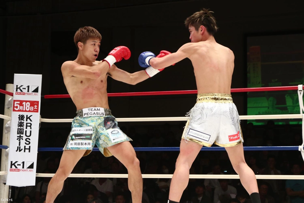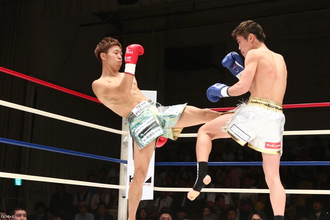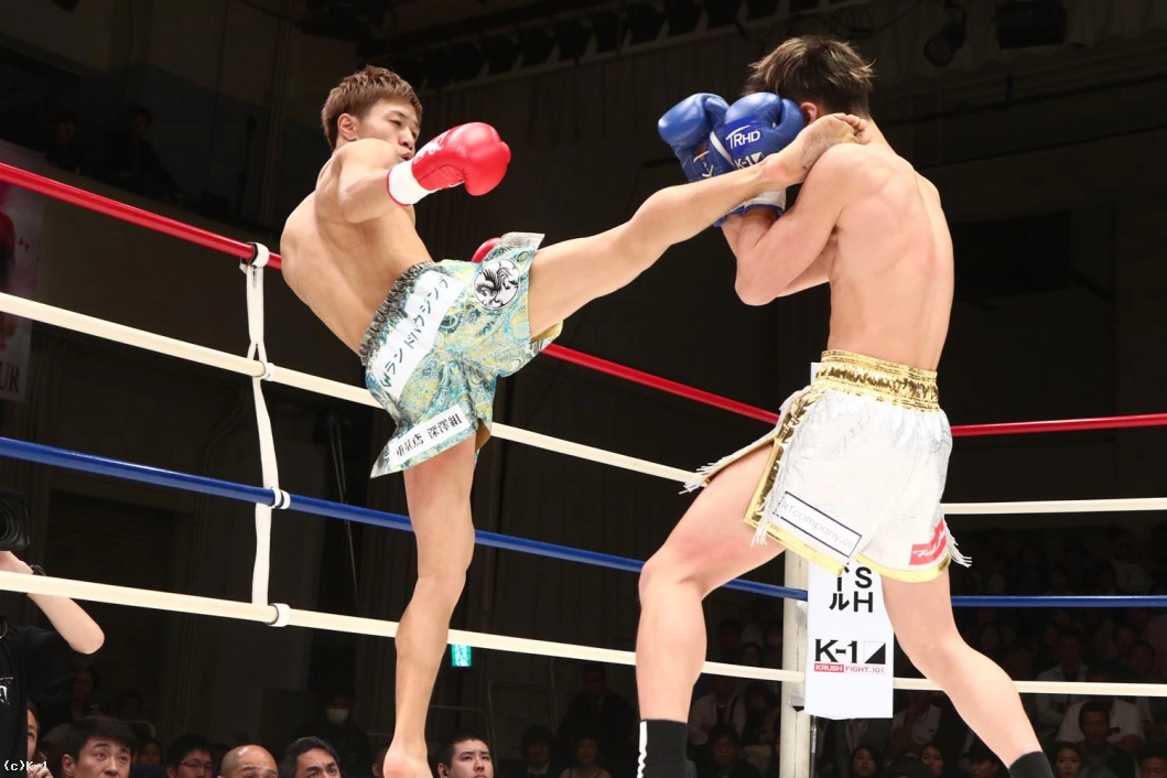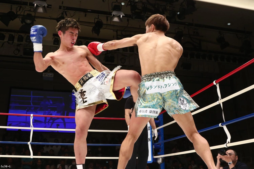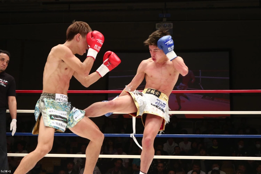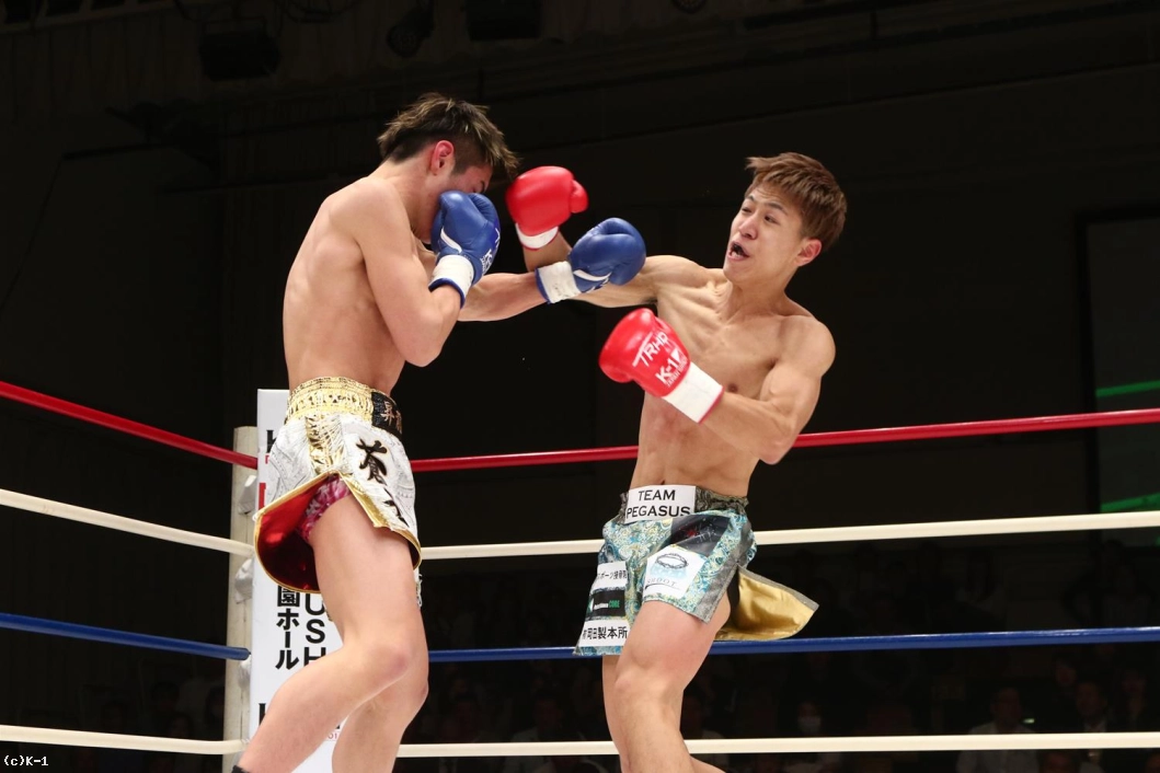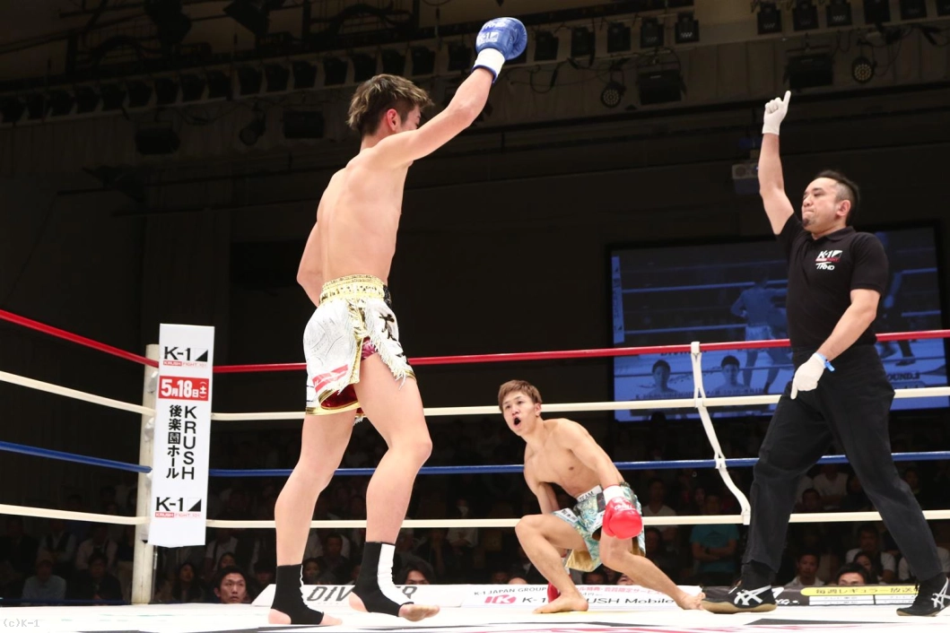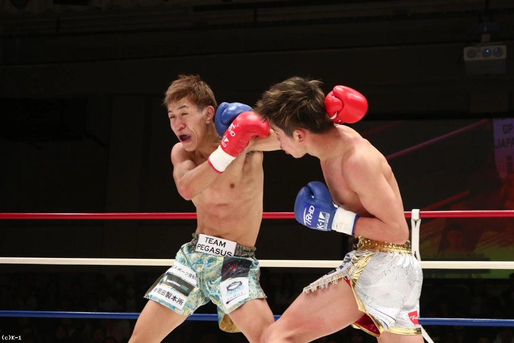 3R、ダウンを奪われた萩原は前に出るが、蒼士はそのジャブをかわしつつ左ボディフックのカウンター。さらに相打ちのタイミングでの左フック、右ストレートから返しの左フックと蒼士はパンチのヒットが目立ってくる。前に出んとする萩原だが、蹴りをキャッチする動きが多くなってしまいレフェリーから注意を受ける。試合最後も蒼士が左フックを当てて終える。判定は30-28、30-27、30-26の3-0で蒼士が勝利した。