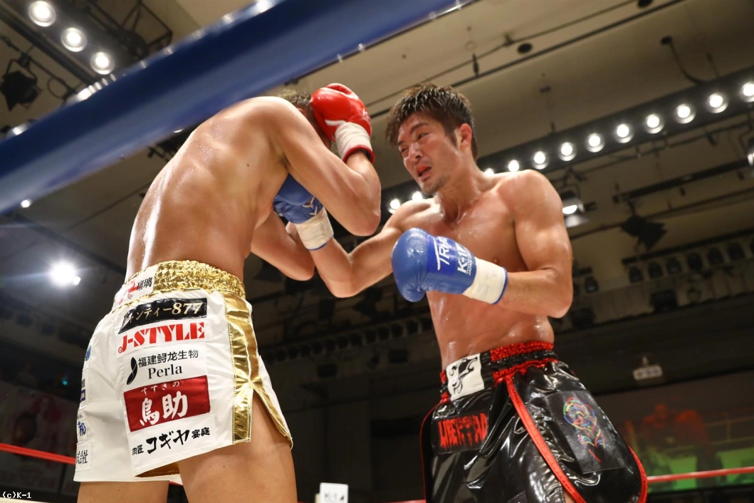 延長R、左ミドルを蹴っていかんとする鈴木だが、左右田は逆にそれをさせじと距離を詰め、接近戦で右クロス・左フック・右アッパーと放っていく。鈴木は近い距離ではヒザ蹴り。レフェリーがブレークして両者を分けると、左右田はすぐに間合いを詰めてやはりショートのパンチを狙っていく。鈴木はプッシングしての左ミドル、あるいは近い距離からヒザを放つが、左右田もヒザを返し、ボディから顔にフックを走らせる。鈴木はヒザと左右のパンチで左右田を押していく。左右田も残り時間が少ない中、ボディアッパーからフックとパンチの回転を止めずに試合を終える。判定は10-9、10-9、10-9の3-0で鈴木。苦しみながらも初防衛を成し遂げた。